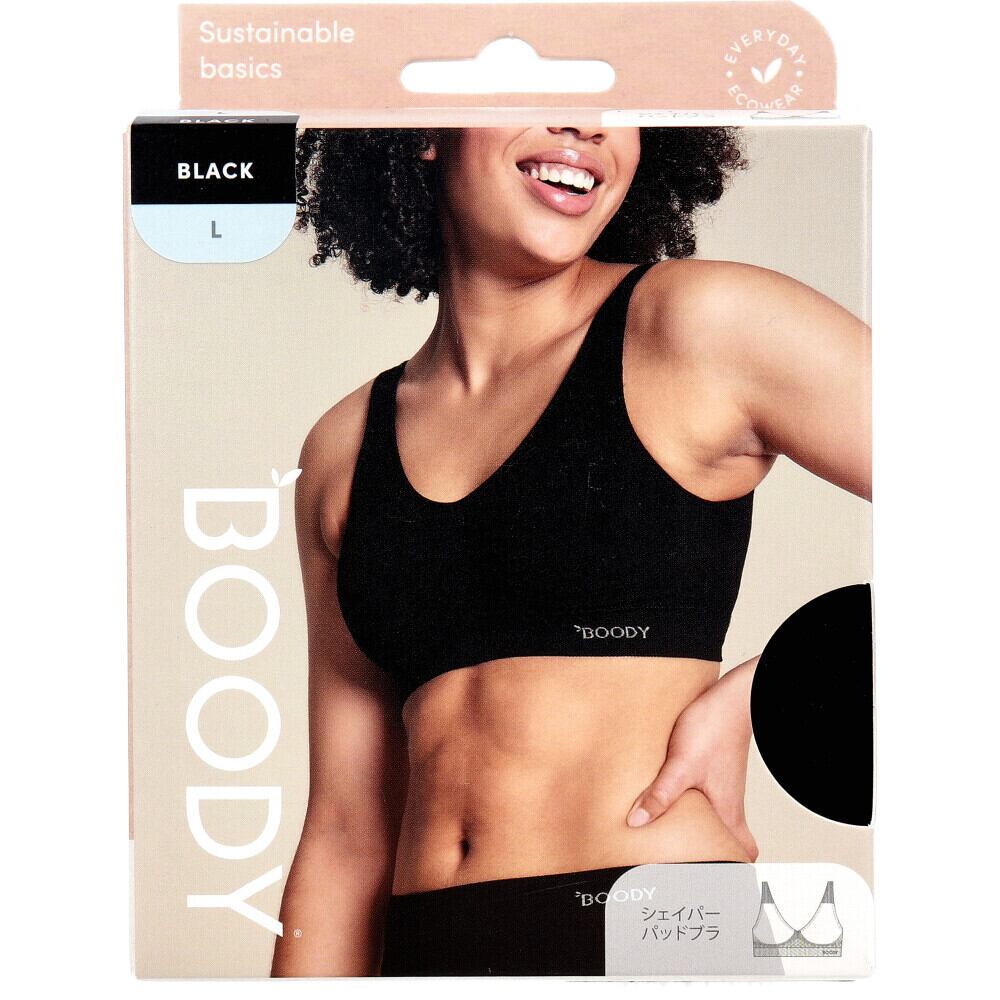 ■快適な着心地を実現! BOODY シェイパー パッドブラ Lサイズ ブラックは、日常生活や軽い運動にぴったりのブラです。しっかりフィットし、動きやすさとサポート力を両立します!