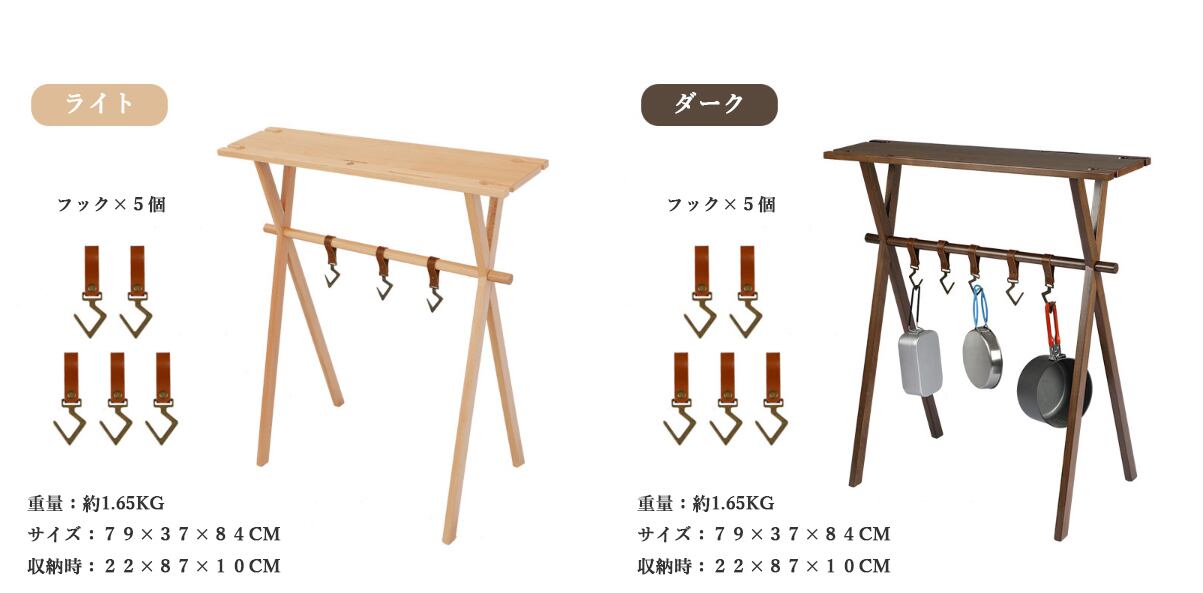 ★便利さと機能性を兼ね備えた設計!天板付きで、ちょっとした置き場所としても活用できる本商品は、専用の収納ケースが付属しており、アウトドアシーンでも気軽に使っていただけます。レザーフックも搭載しており、様々なアイテムを簡単に掛けられます。