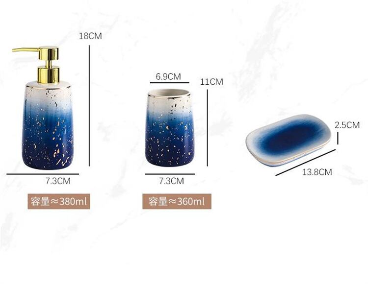 【商品内容】:セラミックボトル、石鹸皿、歯ブラシスタンド、コップ