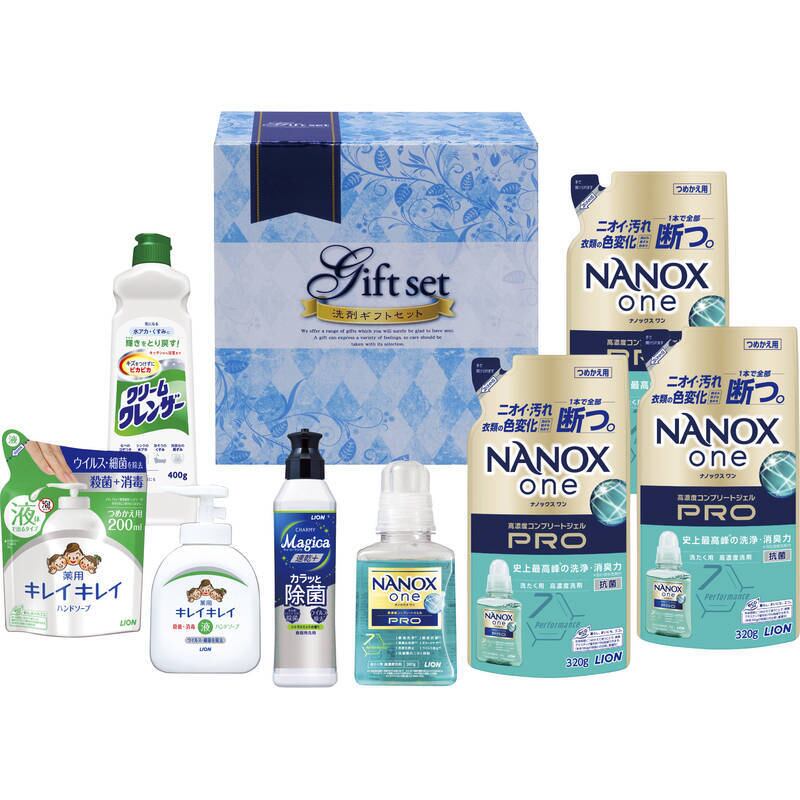 【商品内容】:ナノックスワンプロ 380g(1本)、ナノックスワンプロ詰替320g(3個)、チャーミーマジカ速乾プラス220mL(1本)、キレイキレイ薬用液体ハンドソープ250mL(1本)、キレイキレイ詰替200mL(1個)、クリームクレンザー400g(1本)